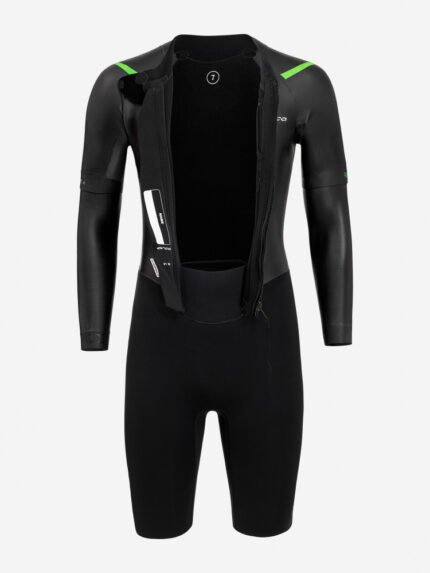 Die exklusive Verwendung von Yamamoto 44 an den Schultern bietet eine noch nie dagewesene Elastizität beim Schwimmen, und seine Konstruktion im Jackenstil ermöglicht es Ihnen, den Anzug zu öffnen, ohne ihn während der Wettkampfübergänge ausziehen zu müssen (bessere Belüftung).