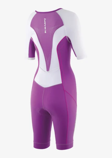 Progettata per la performance: tuta leggera specifica per donna con compressione mirata, tasche integrate e un design che non provoca irritazioni per il massimo comfort durante le gare di nuoto-bici-corsa.