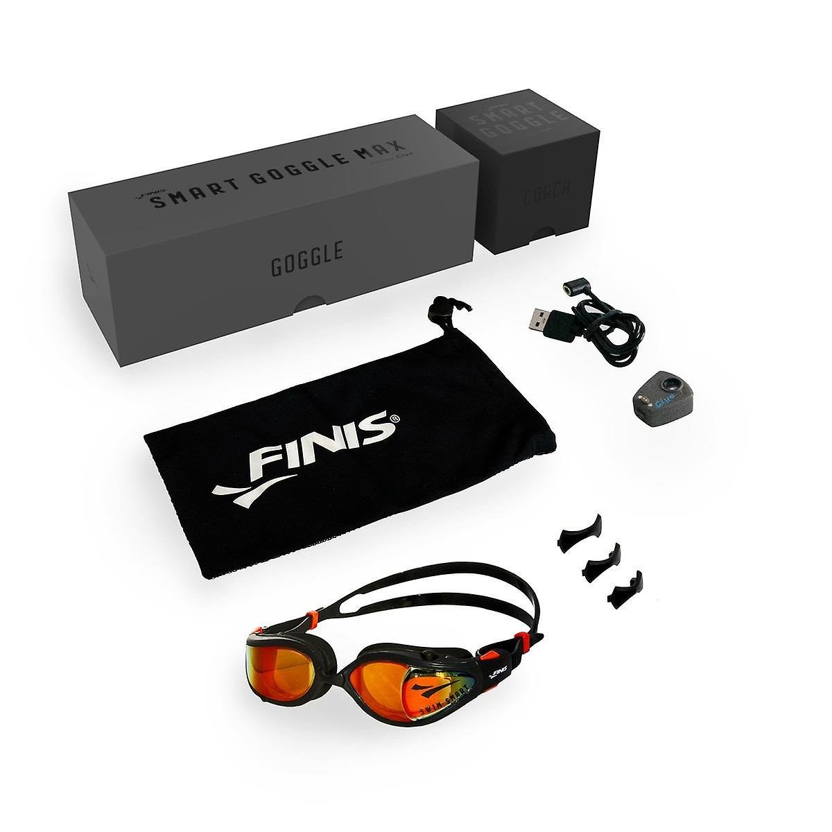IN THE BOX: This kit includes: goggles, Smart Coach module, magnetic USB charging cable, four interchangeable nose bridges, and a soft carrying case.